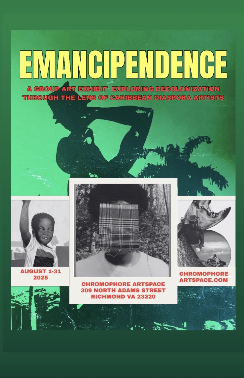 This past August, at Chromophore Artspace in Richmond, VA, we had the profound pleasure of hosting the exhibition Emancipendence Exhibition, featuring an Artist Talk by Kat Thompson. The show ran from August 1–31 2025, and invited artists of Caribbean descent or with ties to the diaspora to engage with themes of freedom, decolonization, resistance, and cultural expression.